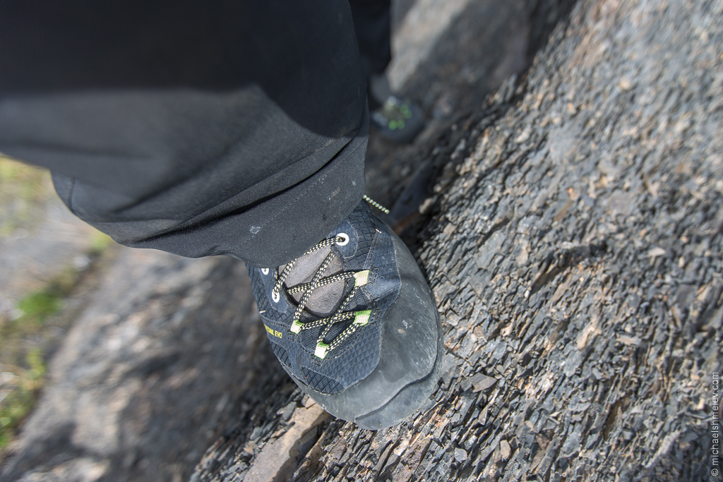 Так как маршруты предполагались в основном низкогорные (основная цель – фотографическая), обувь выбиралась облегченная, дышащая (но не сетка) в меру жесткая и, желательно, непромокаемая. Evo GTX этим требованиям вполне соответствовали и во время путешествия показали себя хорошо. Быстро пройдусь по основным преимуществам: