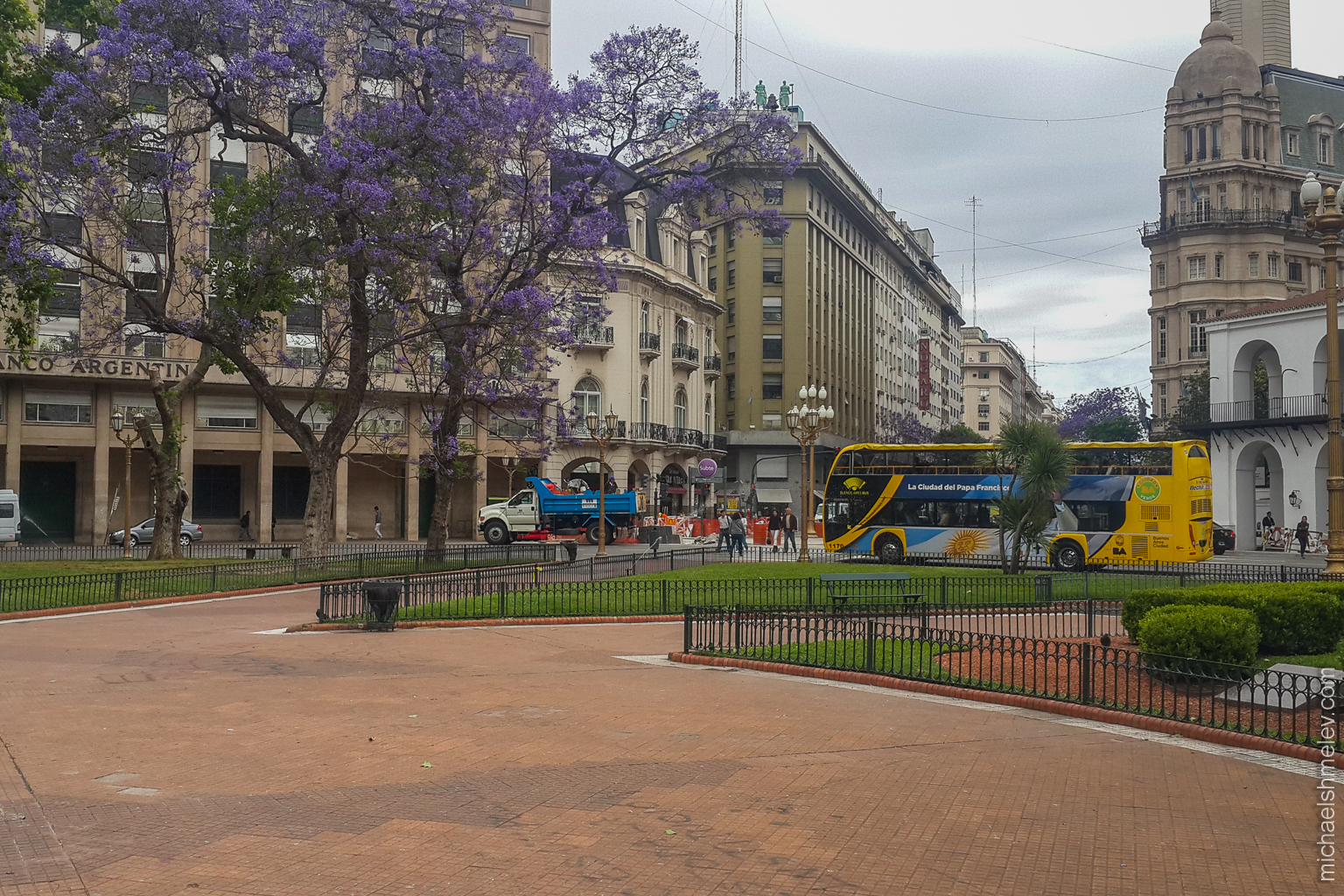 Город встречал меня низким свинцовым небом и пустыми улицами. Ветер гнал по ним какие-то бумажки, обрывки целлофана, звенел по брусчатке в переулках пустыми пивными банками. Видимо, был какой-то праздник или выходной. Редкие прохожие, автобусы. Просторная и довольно уютная планировка улиц. Неведомые мне деревья в цвету. Да, в этих краях уже вовсю заправляет весна!.. В самом сердце Южной Америки я шагал по улицам типично европейского города с колониальным привкусом, приветствовавшего меня монументальными гранитными формами, металлом, массивными коваными дверями и заборами - типичным суровым реквизитом архитектурного академизма прошлого.