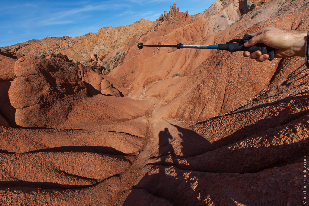 Примерно так я раздумывал, решая, брать или не брать с собой в Киргизию свои Komperdell Carbon Approach Vario 3. Дело в том, что для решения творческих задач фотографа палки в экспедиции часто бывают обузой, так как, чтобы сделать снимок, нужно первым делом избавиться от палок, потом побегать, выбирая ракурс, потом вернуться к тому месту, где оставил палки, воткнутые в землю, и взять их в руки вновь. Во время производства следующего снимка последовательность повторяется, а в походной жизни нет ничего хуже, чем бесполезная повторяющаяся последовательность :)Тем не менее, во время затяжных переходов, когда фотографировать особо нечего, а нужно только, стиснув зубы, уверенно тропить, треккинговые палки - прекрасные помощники, экономящие немало сил.