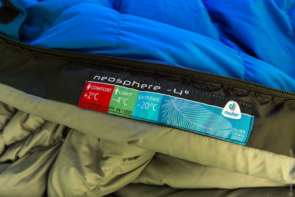 Спальный мешок Deuter Neosphre приобретался мной как ультралёгкий спальник для "тёплых" походов. Эксплуатировать его планировалось преимущественно в летнее время, а также, поздней весной и ранней осенью, когда температура не опускается ночью ниже нуля. В то же время, на случай ночевок в горах, в экстремальном режиме спальник должен выдерживать лёгкий минус.