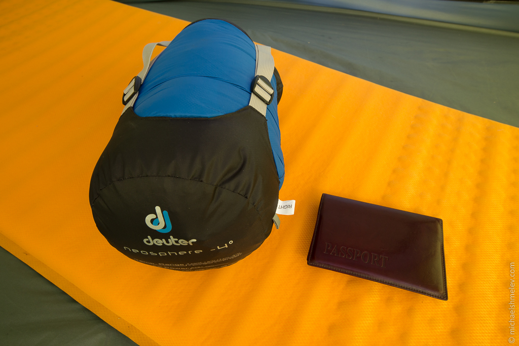 Во время нашего весеннего похода по Киргизии мы столкнулись с большим перепадом температур. В южной части страны ночью температура не опускалась ниже 15 градусов, в то время как в северной части во время ночевок в горах к утру вокруг стабильно был иней. В особенно холодную ночь мне пришлось спать в флиске и брюках, затянув на спальнике все регулировки - видимо, температурный лимит -4 был достигнут. Но я не замерз!