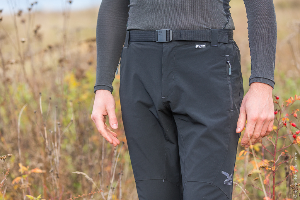 Карманы по бокам и сзади расположены так, чтобы ими было удобно пользоваться, находясь в альпинистской обвязке. В комплекте идёт довольно удобный и прочный ремень, что тоже неплохо - можно использовать для крепления всяких мелочей. Производитель брюк также заявляет антибактериальные свойства - не смейтесь, часто это очень актуально в длительных походах, когда в одной и той же одежде находишься круглые сутки.